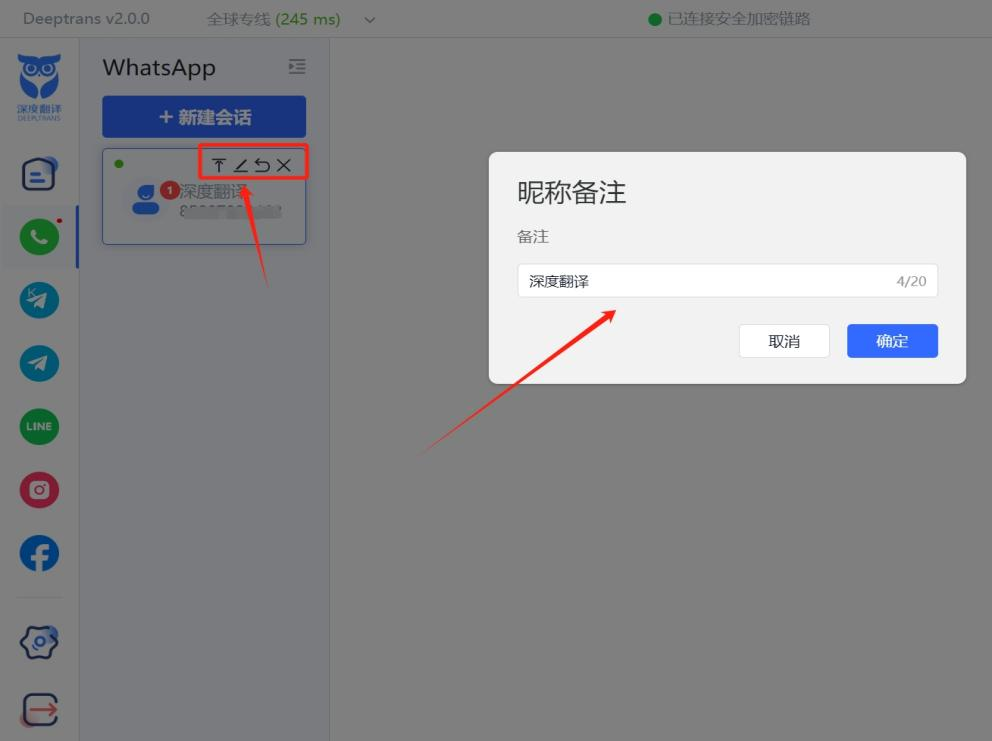 应用选择对应账号,点击【昵称备注】自定义编辑昵称备注